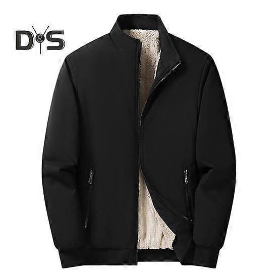 Men Cotton Coat Stand Collar Long Sleeve Thickened Velvet Lining Winter Jacket with Pockets Solid Color Business Outerwear