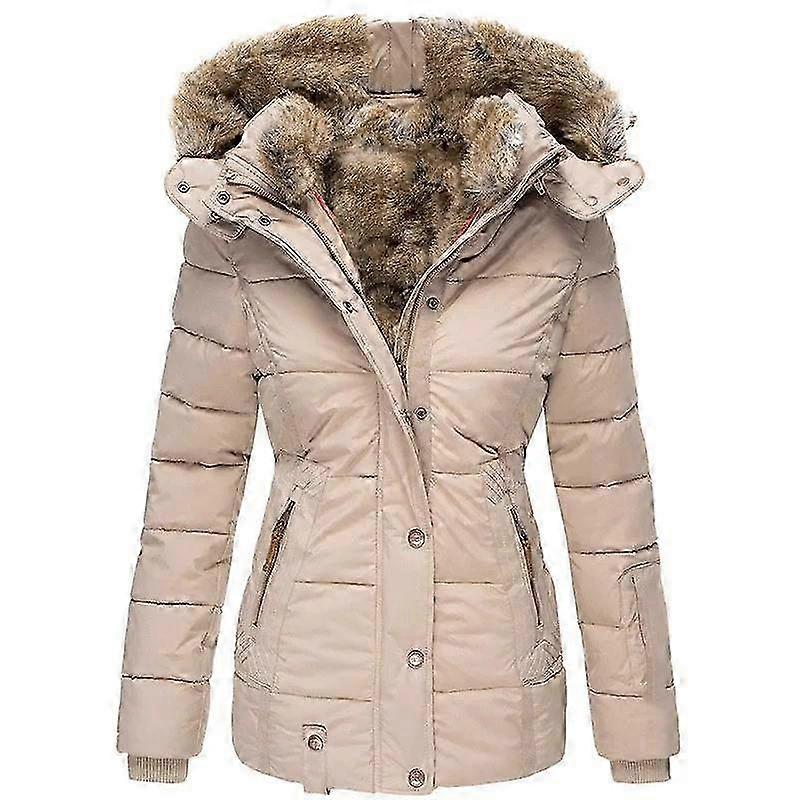 Warm Coat for Women with Hood - Winter Fur Collar Zipper Jacket