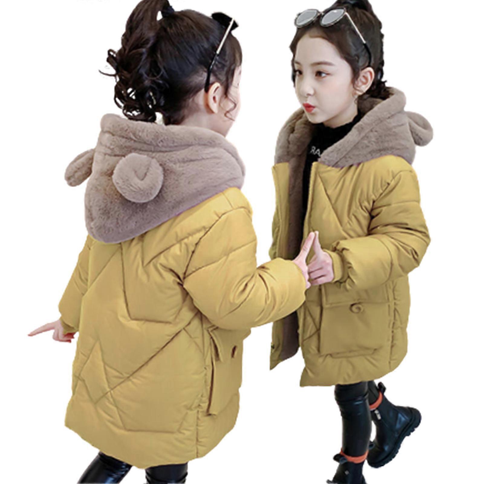 Bear Ear Hooded Coats for Girl Cotton Padded Mid-Length Winter Coat for Kids Girls Travelling Camping