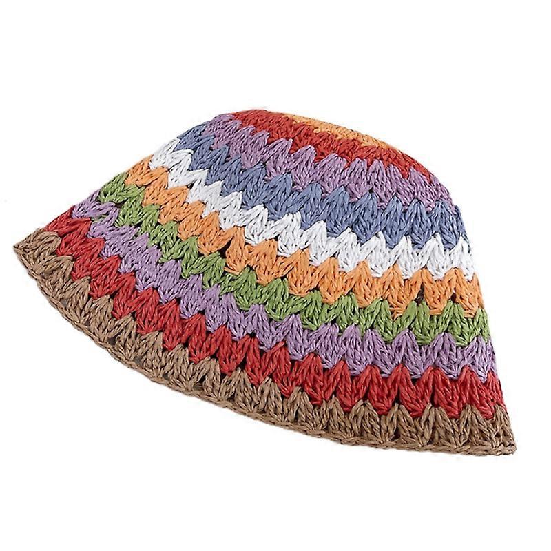 Casual Crochet Color Matching Bucket Hat for Summer Cap Sunproof Fisherman Hat