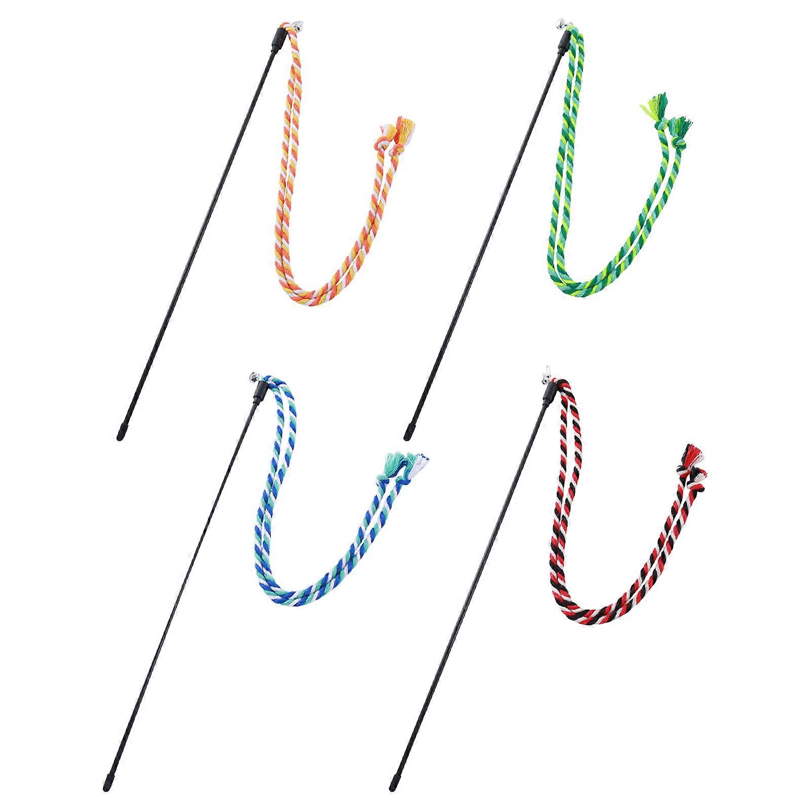 Cat Tease Stick Toy Bite-Resistant with Bell Kitten Playing Interactive Teaser Wand Toys Handwoven Cotton Rope Pet Accessories