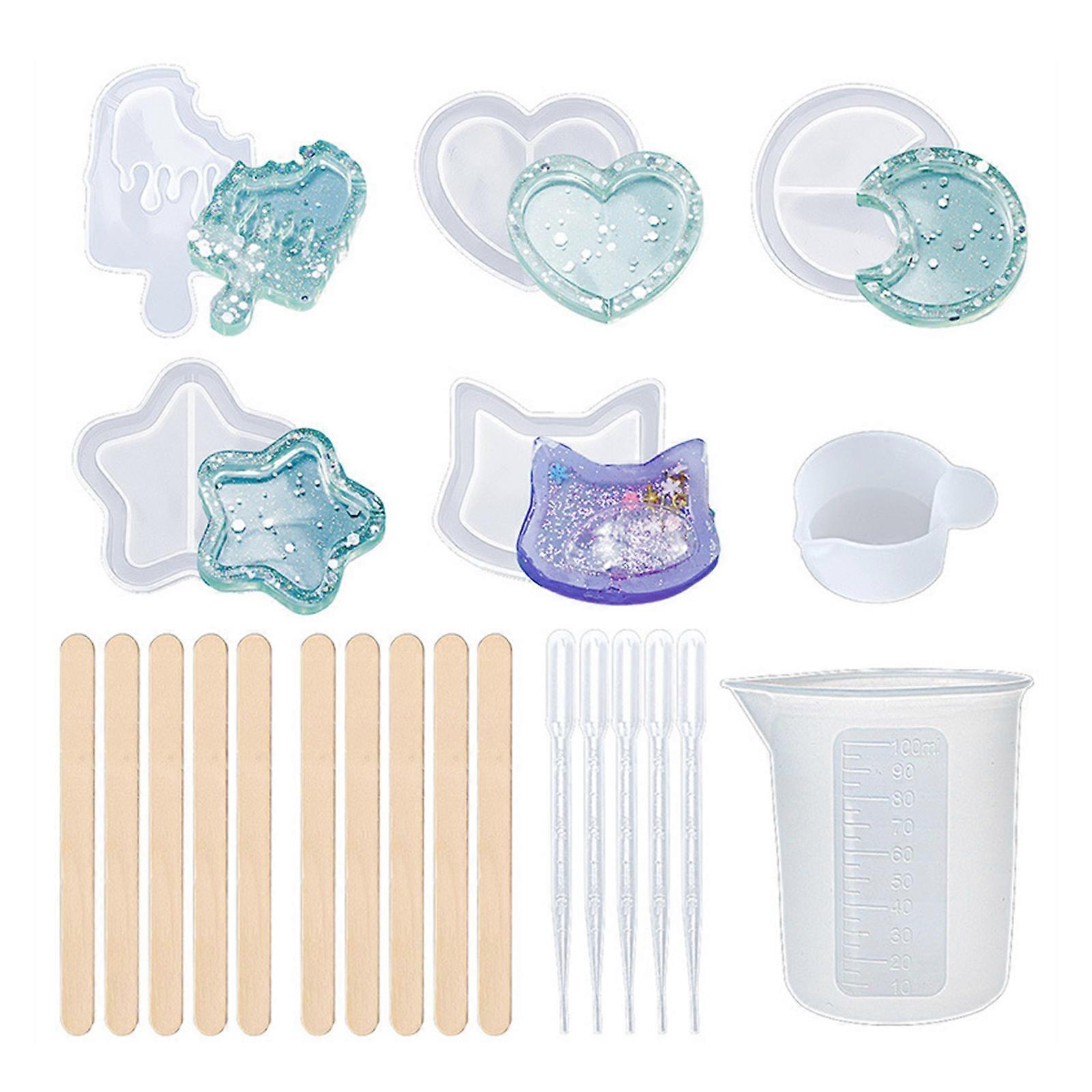 Cats Heart Moon Pentagram Ice Cream Shape Quicksand Silicone Mold Resin Keychain Mold Casting for DIY Making Craft Multicolor