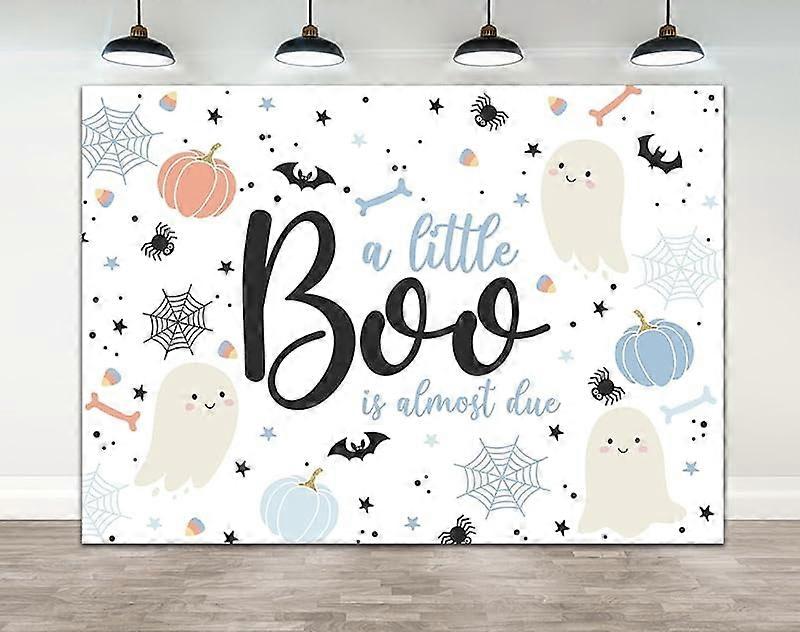 Baby Shower Backdrop A Little Boo is Almost Due, Blue Ghost Bat Pumpkin Design, Compatible with Hey Boo 1st Birthday Party Decor