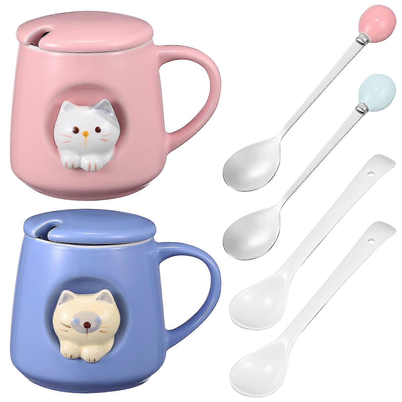 Ceramic Drinking Mug Set 4Sets with Lid Spoon for Drinking Coffee Or Tea