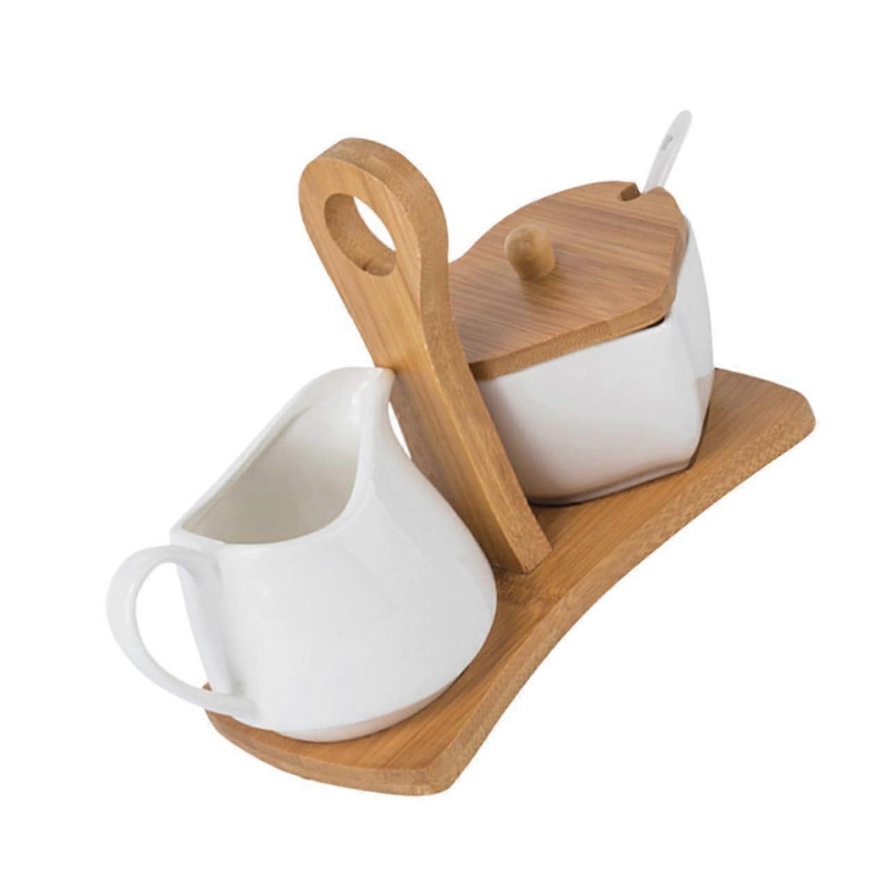 Ceramic Kitchen Storage Set with Tray and Spoon, Elegant Sugar Jar and Spice Containers
