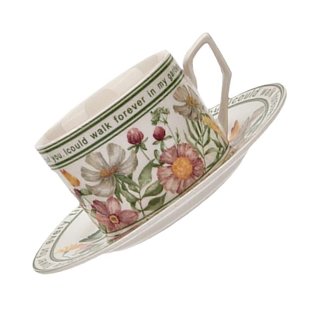 Ceramic Water Mug Set For Home And Office Multi Colored Vintage Drinking Cups With Saucer 2 Sets