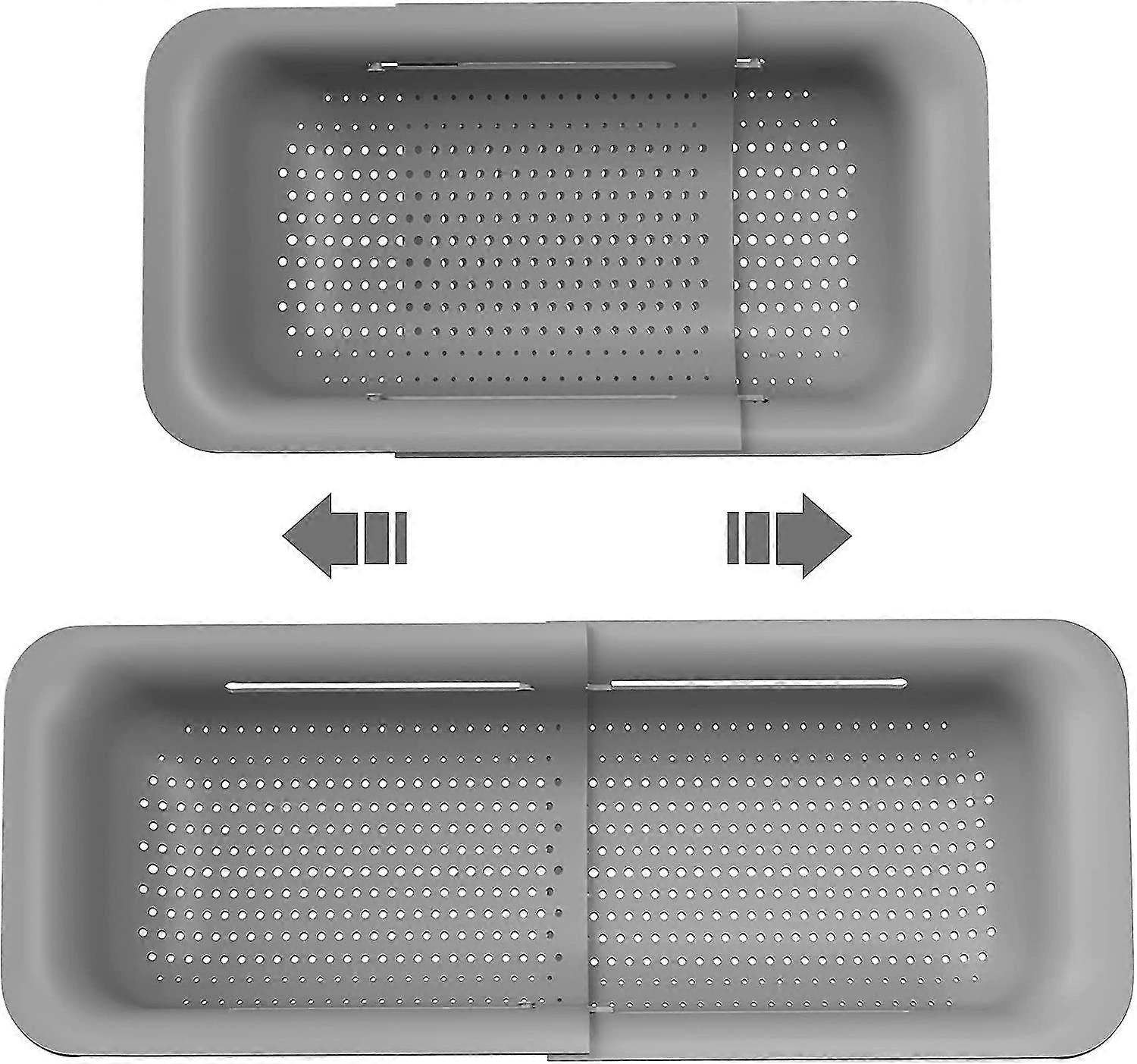 Sink Colander Strainer Basket, Extendable Strainer Adjustable Fruits Vegetables Drain Basket For Kitchen (length 14.3 Inch-19.4 Inch, Gray)