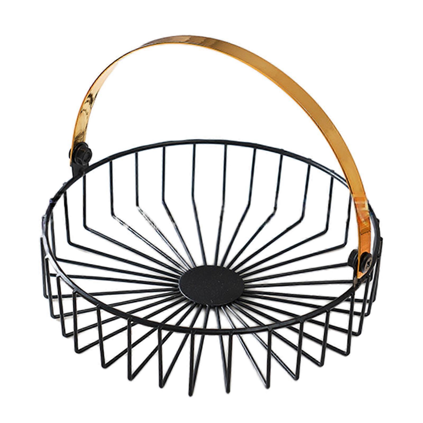 Nordic Metal Fruit Basket Bin with Handle Kitchen Wrought Iron Rectangle Storage Basket Food Container for Home Bedroom