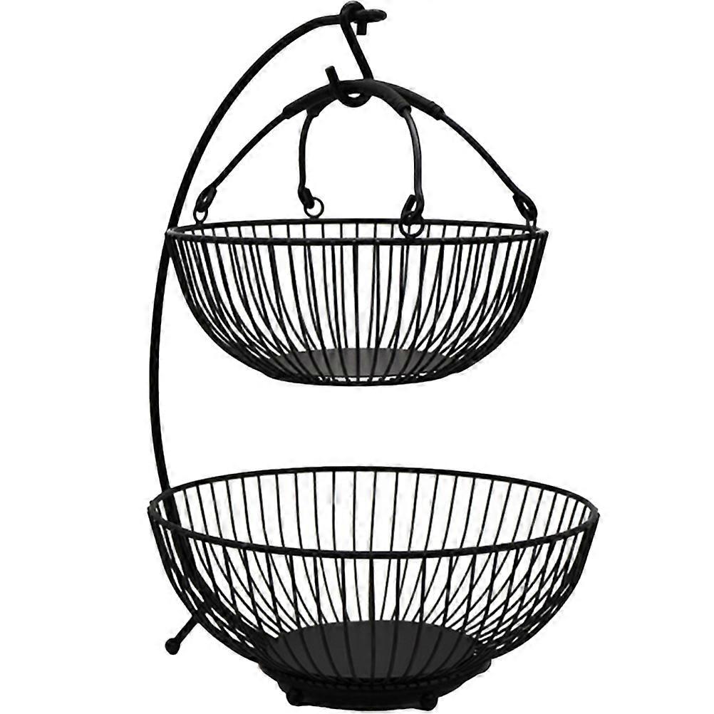 Black Fruit Basket Double Layers for Storage 2 Tier Iron Fruits Dessert Tray