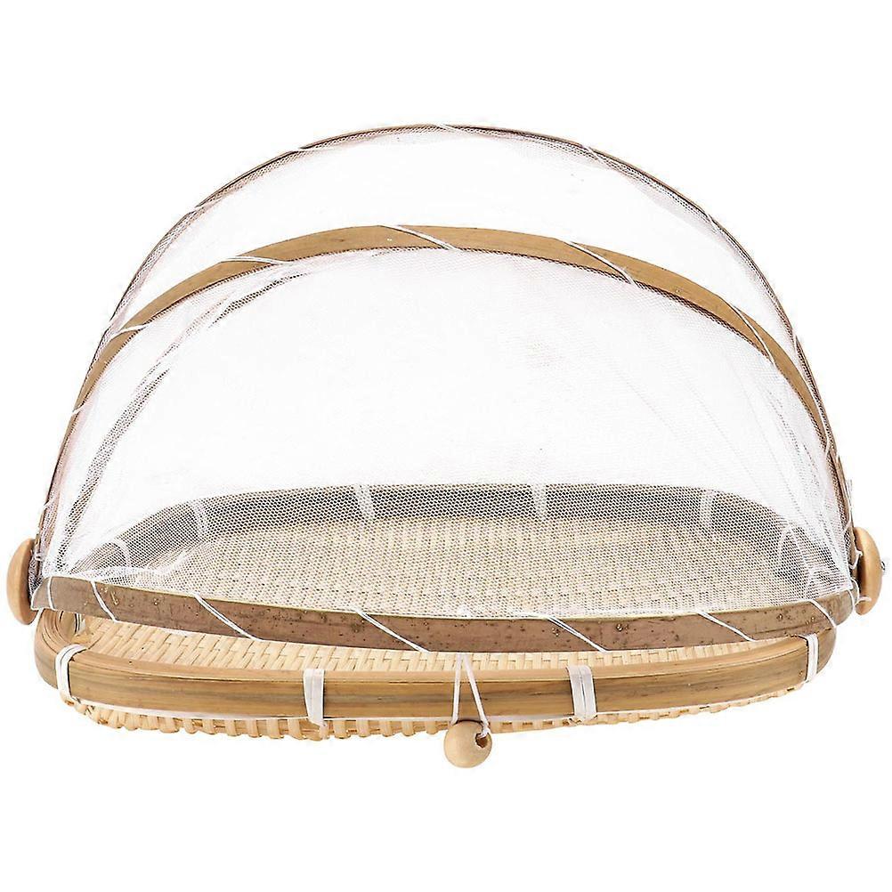 Bamboo Woven Fruit Basket with Mesh Cover for Storage MultiPurpose Use 12.5 x 9.5 x 4.5 Inches