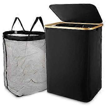 Cesta de lavanderia com tampa, cesto de lavanderia preta com saco de lavanderia removível - Sorter de lavanderia para banhista