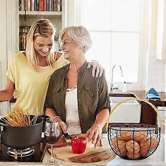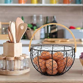 Farmhouse Wire Egg Basket for Gathering Fresh Eggs with Wooden Handle