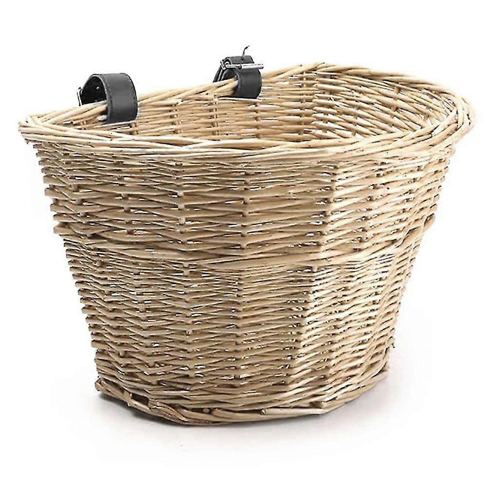 Wicker D-shaped Bike Basket Portable Hand-woven Shopping Basket Folk Craftsmanship Basket With