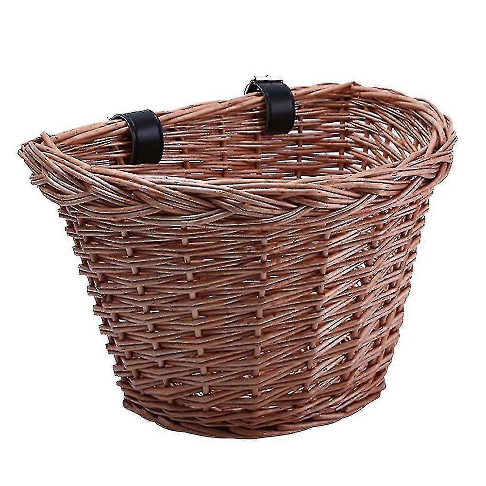 Wicker D-shaped Bike Basket Portable Hand-woven Shopping Basket Folk Craftsmanship Basket With
