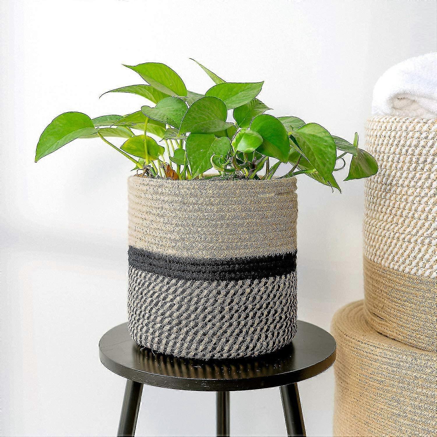 Sturdy Jute Rope Plant Basket Modern Woven Basket Up To 7.5 Inch Flower Pot Floor Indoor