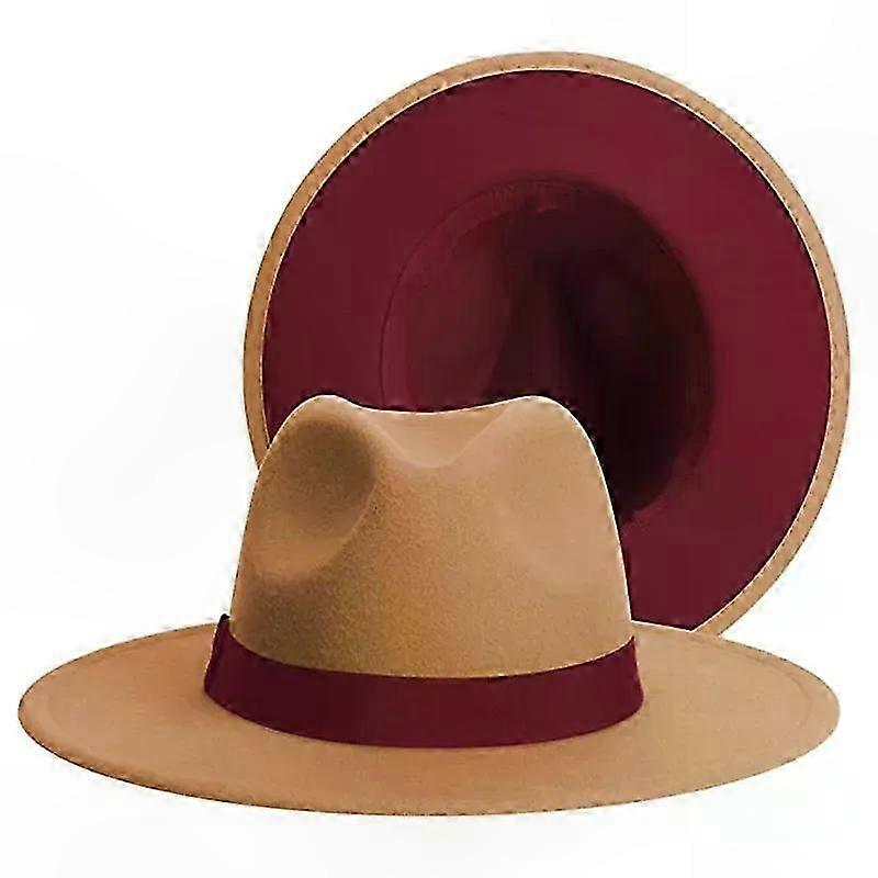 Two-Tone Felt Wide Brim Hat for Men and Women, Patchwork Design with Brown Belt, Jazz and Cowboy Style