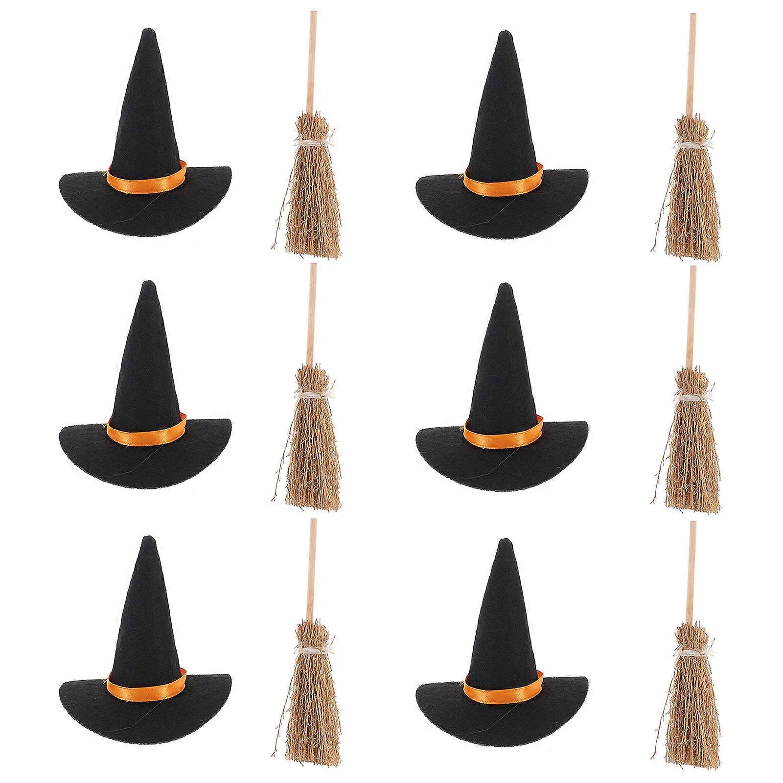 Miniature Witch Hat Decor for Halloween with Wooden and Cloth Material 6Set