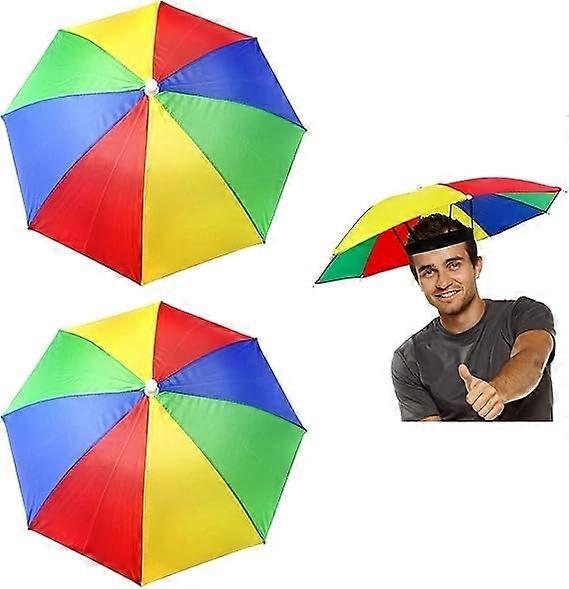 Umbrella Hat,2 PCS Rainbow Umbrella Sunshade Fishing Umbrella Hat With Elastic Bands Adjustable Beac