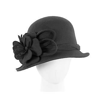 Chapéu de inverno de feltro preto com flor de Max Alexander J437 J437B