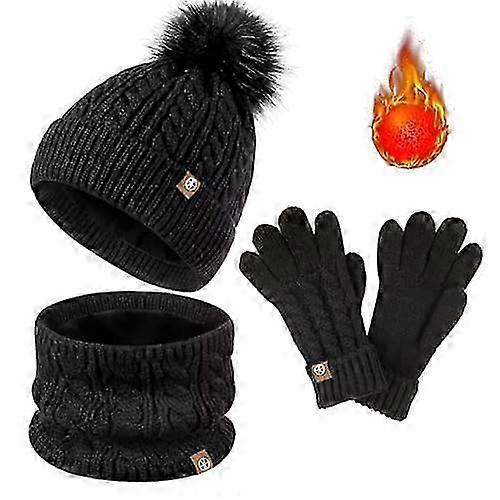 Winter Hat Gloves Scarf Set Fleece Lining Beanie Hat Knit Gloves Neck Warmer Winter Gifts For Children 5-12