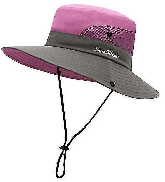Sun Hat, Barrel-Shaped Wide Brim, Summer Beach, With Breathable Mesh and Uv Protection Upf 50+, Cap Circumference 22 Inches -23 Inches (Pink)