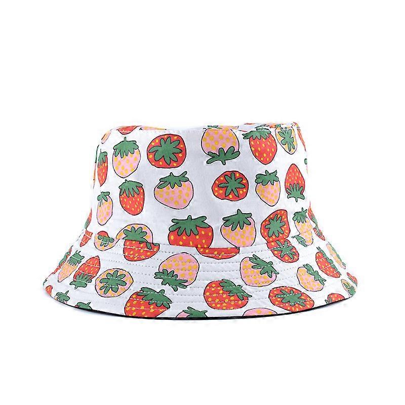 Unisex Printed Double Sided Hat, Bucket Hat, Bucket Hat, Multicolor Washable Cotton Sun Hat, Cap Size 22 Inch -23 Inch (White Strawberry)