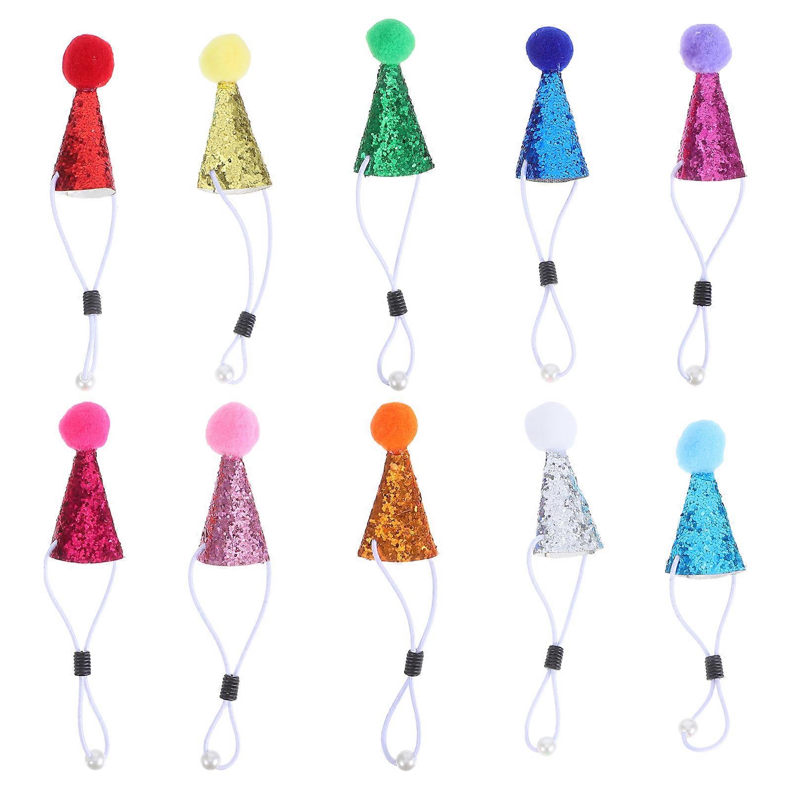 Stuffed Animal Party Hats 10Pcs Assorted Color Durable Pet Headwear with Pom Poms for Home Use