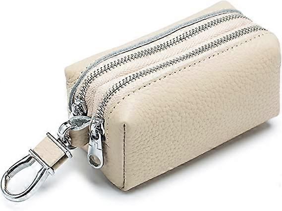 Genuine Leather Car Key Case,Unisex Double Zipper Keychain Wallet Coin Purse Bag with Metal Hookyellow