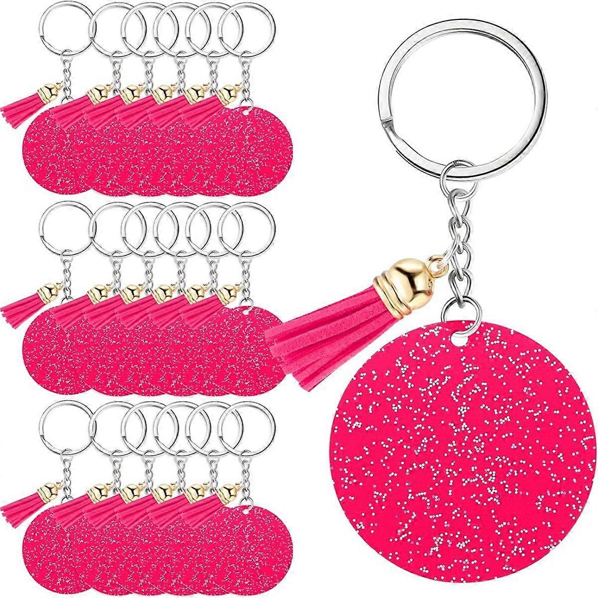 Acrylic Keychain Blank with Key Ring 1.97 Inch Glitter Acrylic Blank DIY Keychain Rose Red