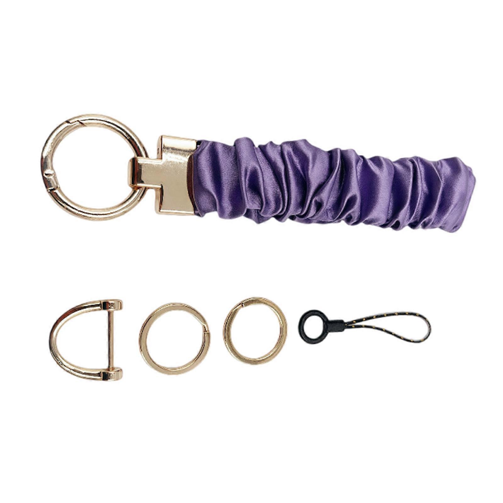 Stylish Zinc Alloy Key Ring With Hair Band Phone Strap Multi Purpose Scrunchie Keychain Wristlet for Gym Shopping Purple