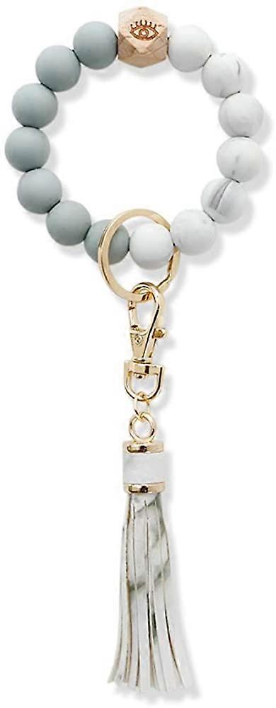 Key Ring Bracelet Silicone Beaded Bracelet keychain Elastic Bangle Wristlet Keychains Tassel compatible with Woman and Girls