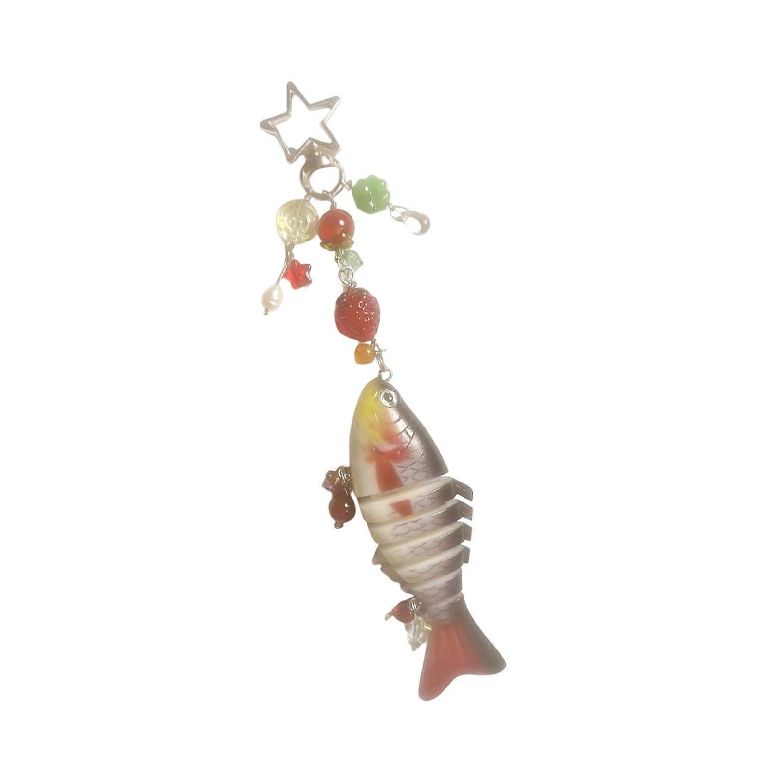 Realistic Motion Fish Shaped Keychain Lightweight Structure Flexible Articulated Body For Backpacks Practical Gift Red