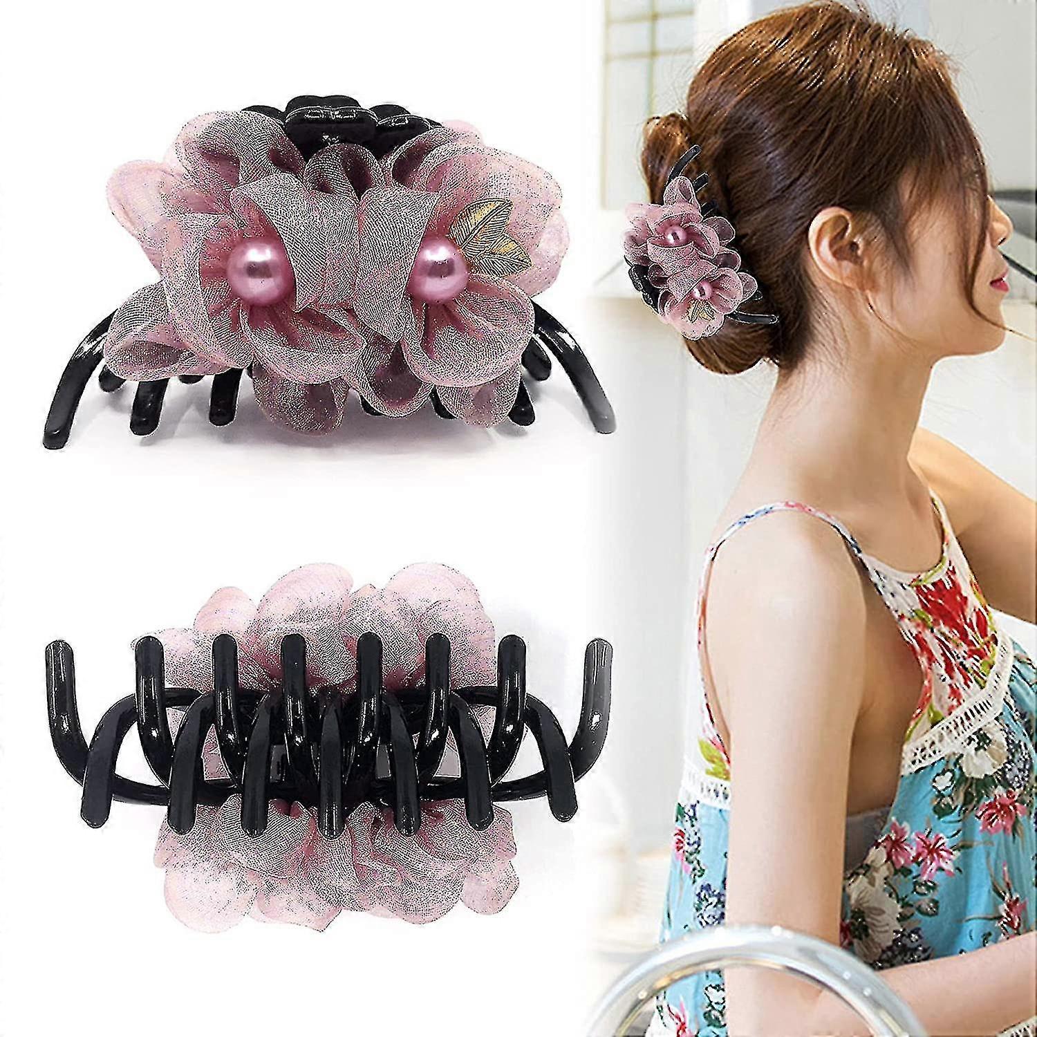 Fast Arrive Women's Hair Claw Banana Clips With Flower And Pearl French Style Plastic Accessories