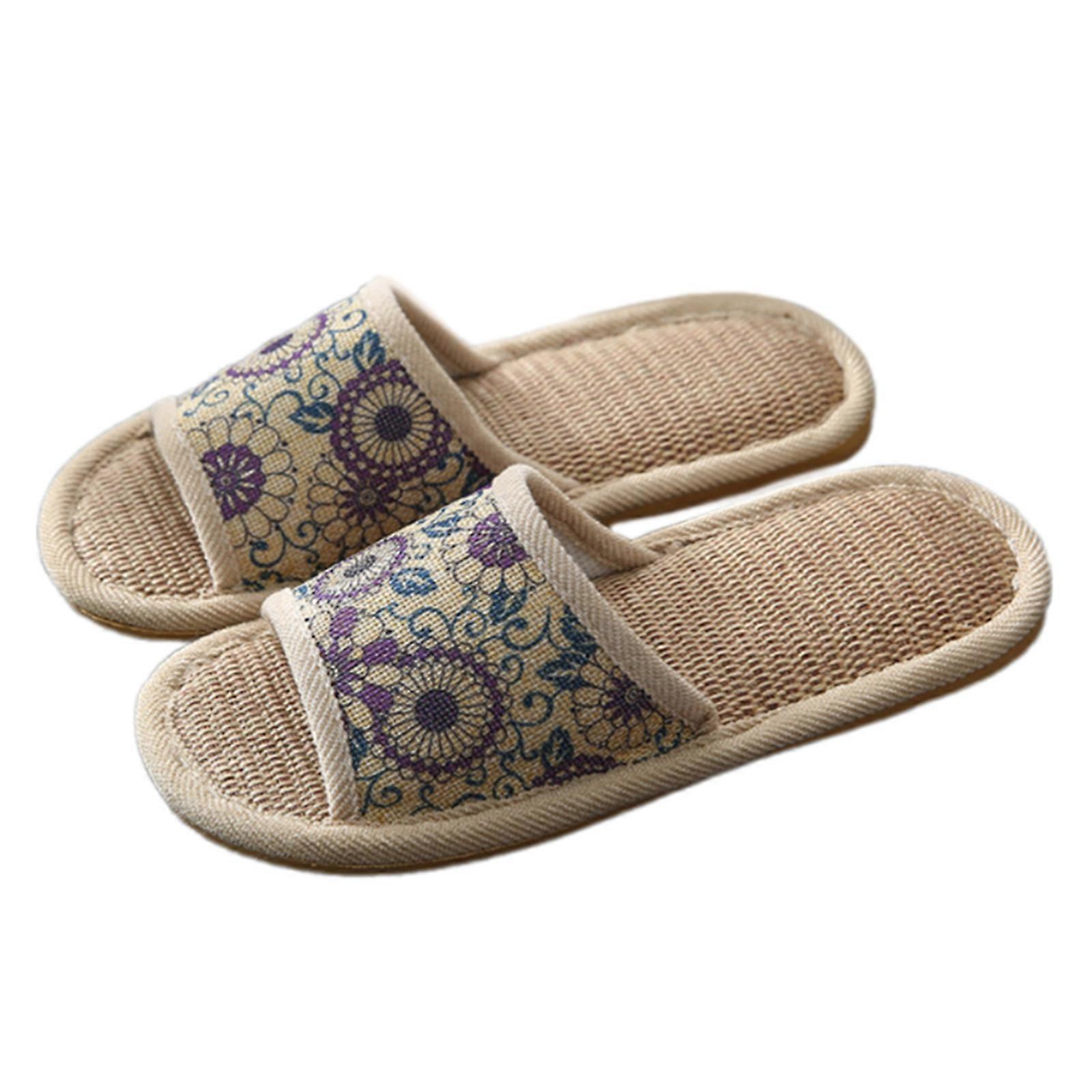 Women's Family Safe Indoor Slippers Abrasion Resistant Soles Quick Dry Cotton Linen Fabric Sandals for Hot Weather Use Purple B