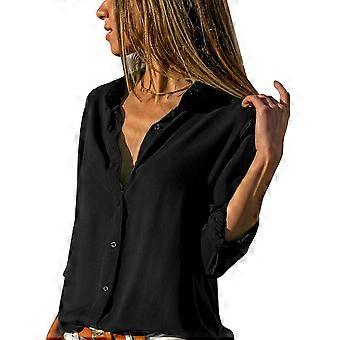 CHOSUR Store Down Collar Chiffon Loose Lady Autumn Turn Buttons Down Shirt