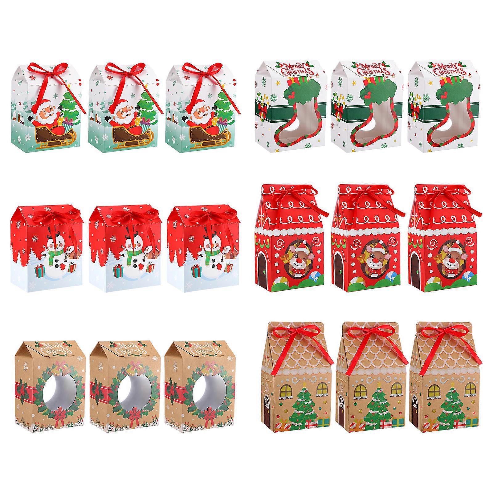 Christmas Bakery Boxes Kraft Cookie Boxes for Storage 1Set with Ribbon