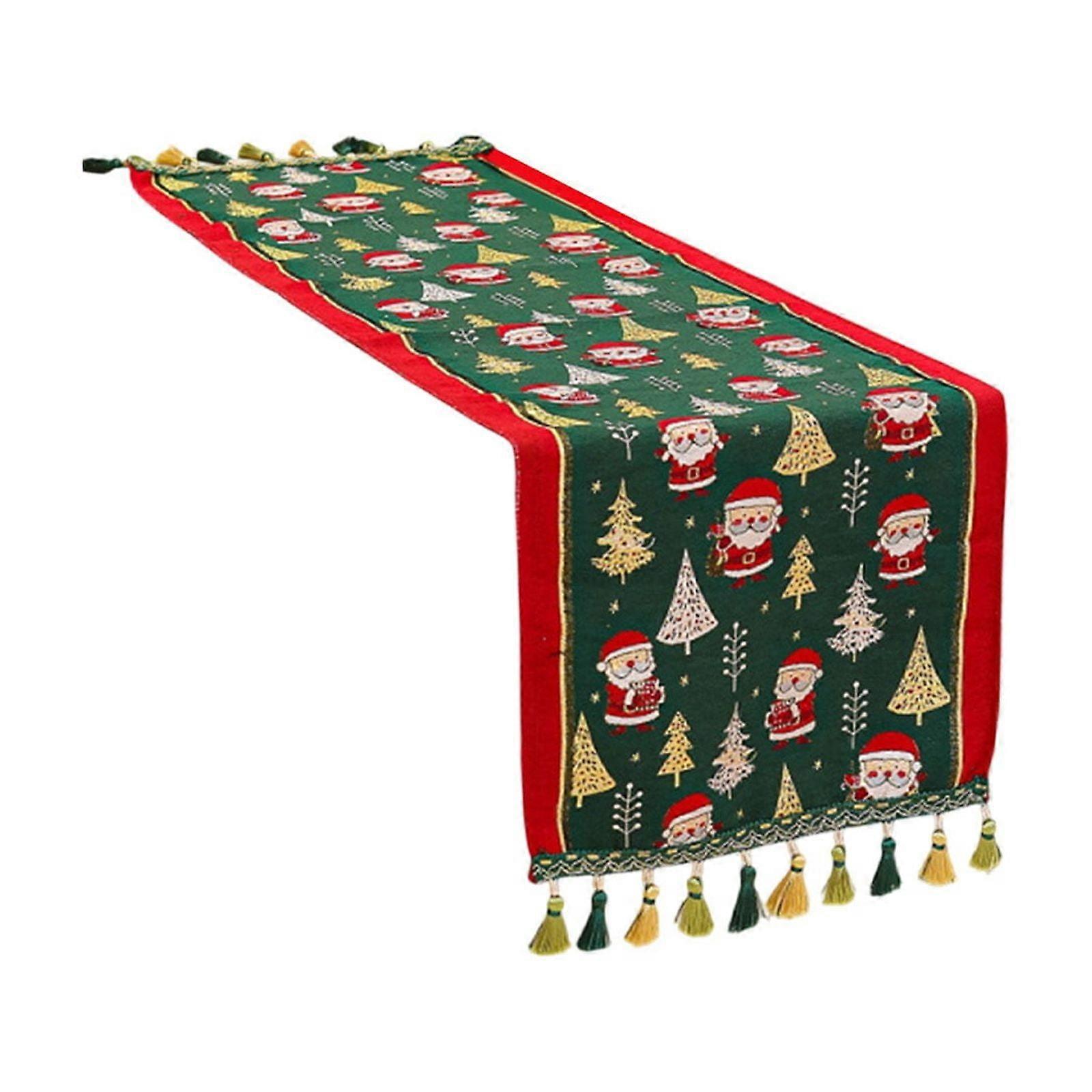 Christmas Table Flag Printed Rectangular Tablecloth With Tassel Fringe Holiday Decorative Long Table Runner For Home Party Dining Table