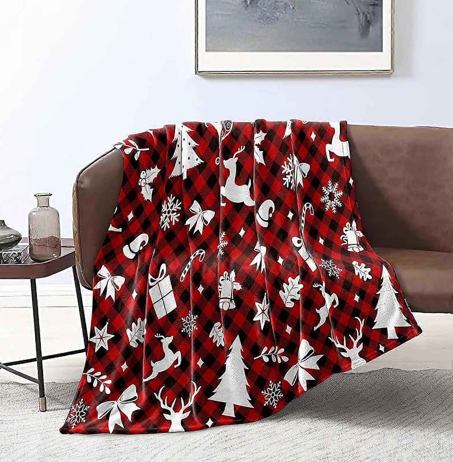 Christmas Throw Blanket: Red Buffalo Plaid, Snowflakes & Tree Print, Super Soft Fuzzy Flannel, Lightweight Plush for Sofa Compatible with Holiday