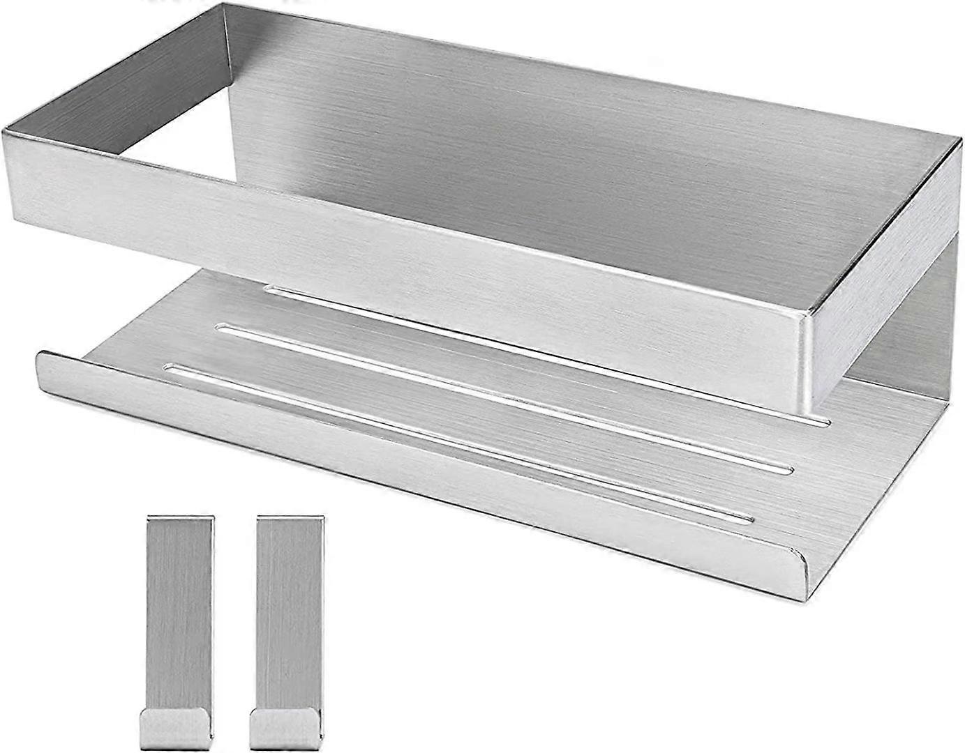 Self-Adhesive Shower Caddy Brushed Stainless Steel Shower Caddy-Adhesive Shower Caddy Bathroom Shelf SUS304 Stainless Steel-With 2 Hooks