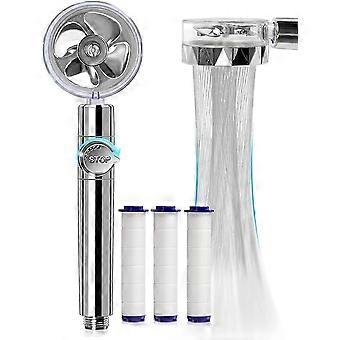 High Pressure Water Saving Shower, 360 Degrees Rotating Propeller Driven Handheld Shower Head With Filter, Turbo Spa Shower Head With Fan & Switch (bl