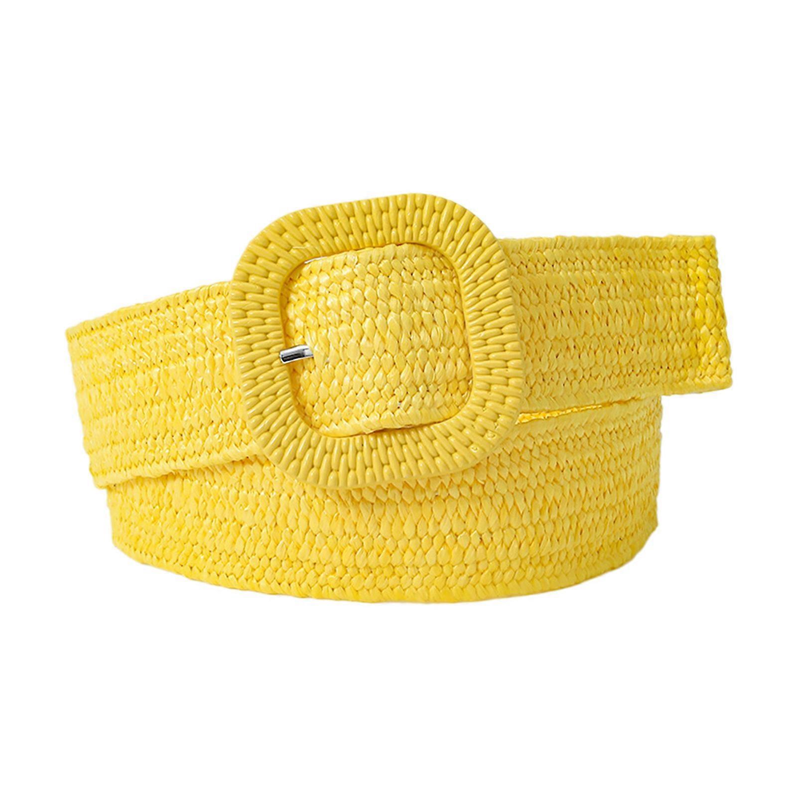 Adjustable Buckle Waist Belt Women Elastic Belt Weave Braided Belt Wide Waistband Colorful Straw Vintage Bohemian Yellow