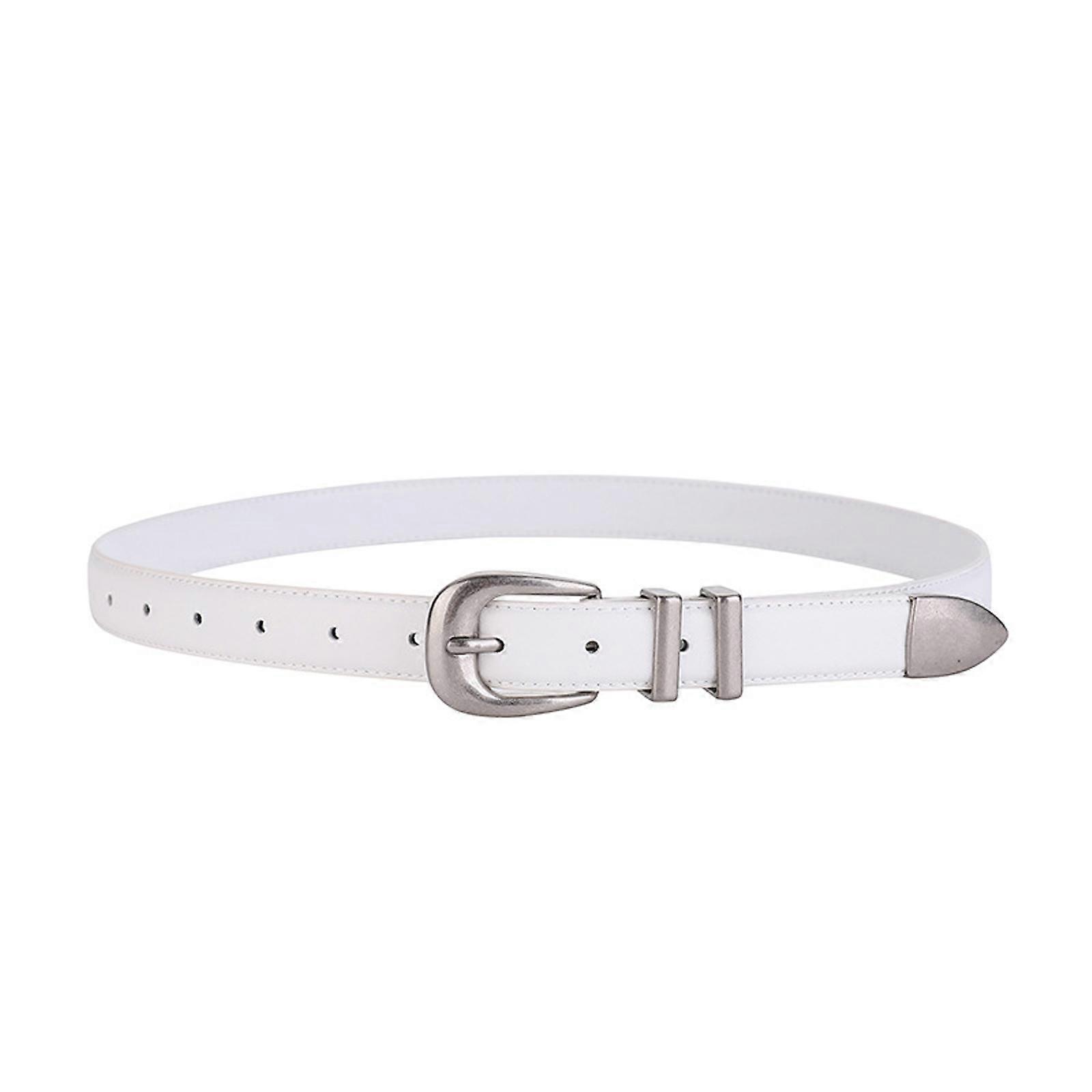 Fashionable Women Leather Belt With Antique Finish Metal Buckles Genuine Western Design Multiple Colors Holiday Gift White