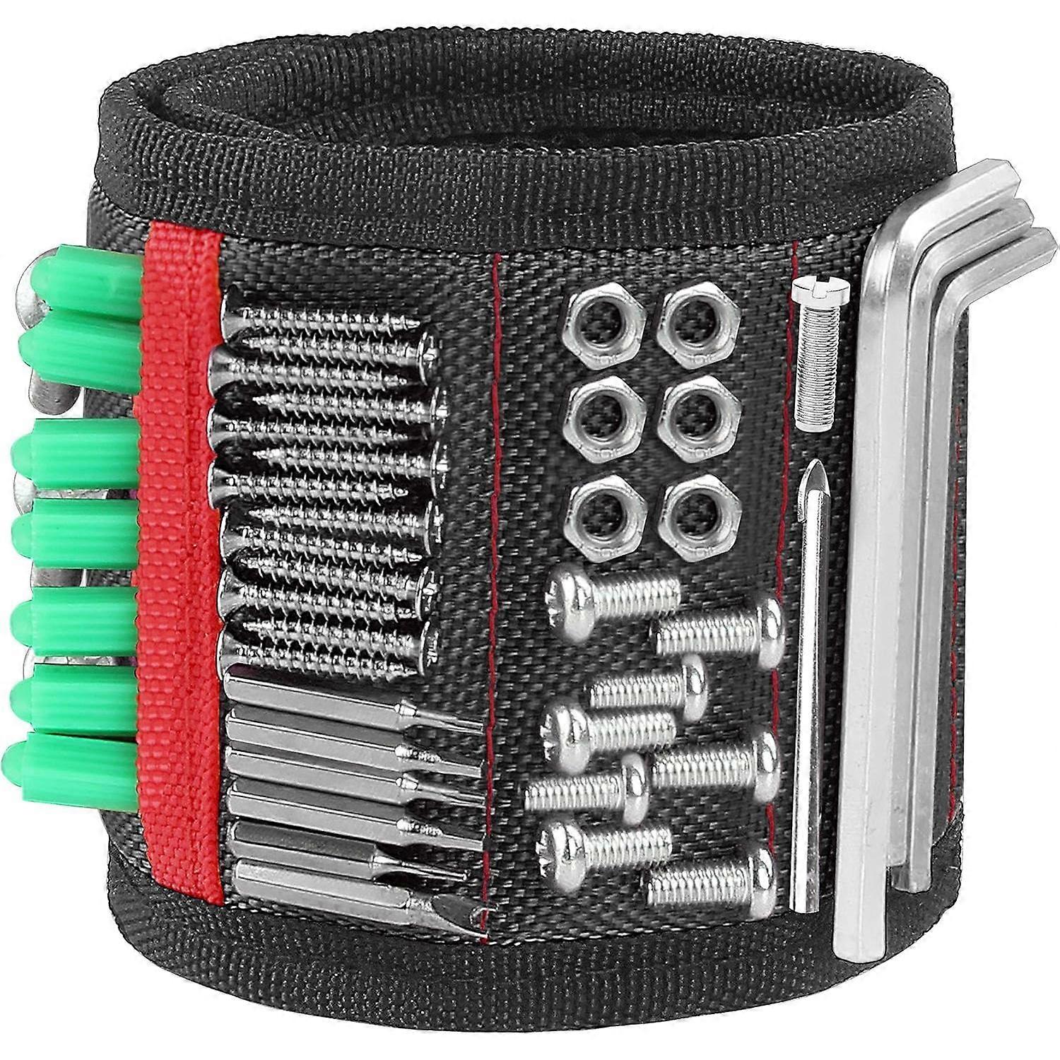 Tool Belt with Magnetic Wristband: 15 Powerful Magnets for Holding Screws and Tools, Lightweight Design with Dual Pockets for DIY Projects