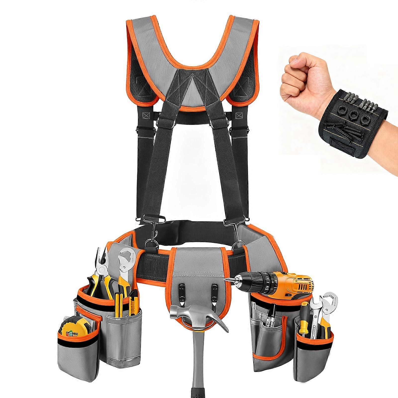 Tool Belt with Suspenders Heavy Duty Adjustable 3666in with Magnetic Wristband 18 Pockets