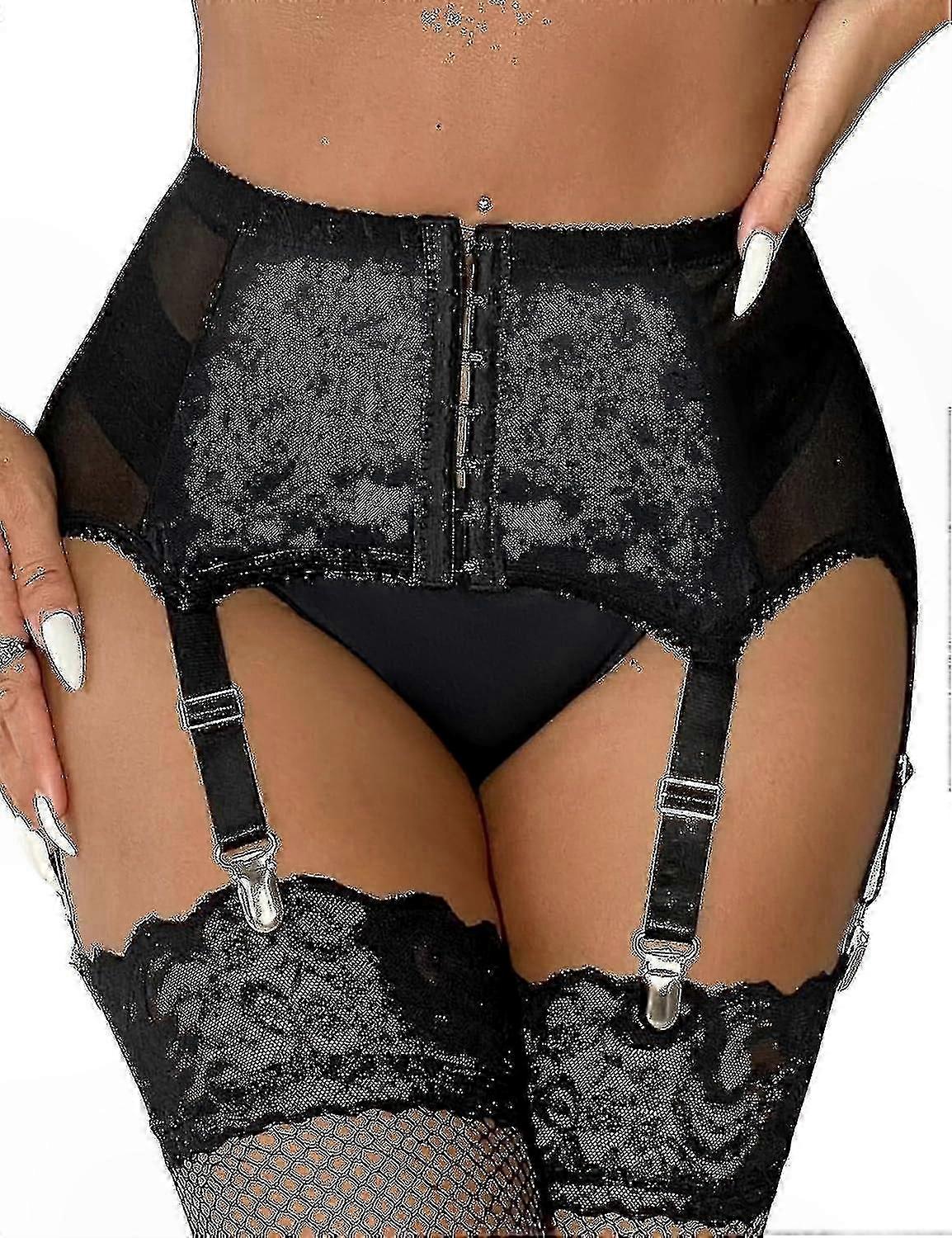 Plus Size Lace Garter Belt with 6 Metal Clips and Adjustable Susps for Women