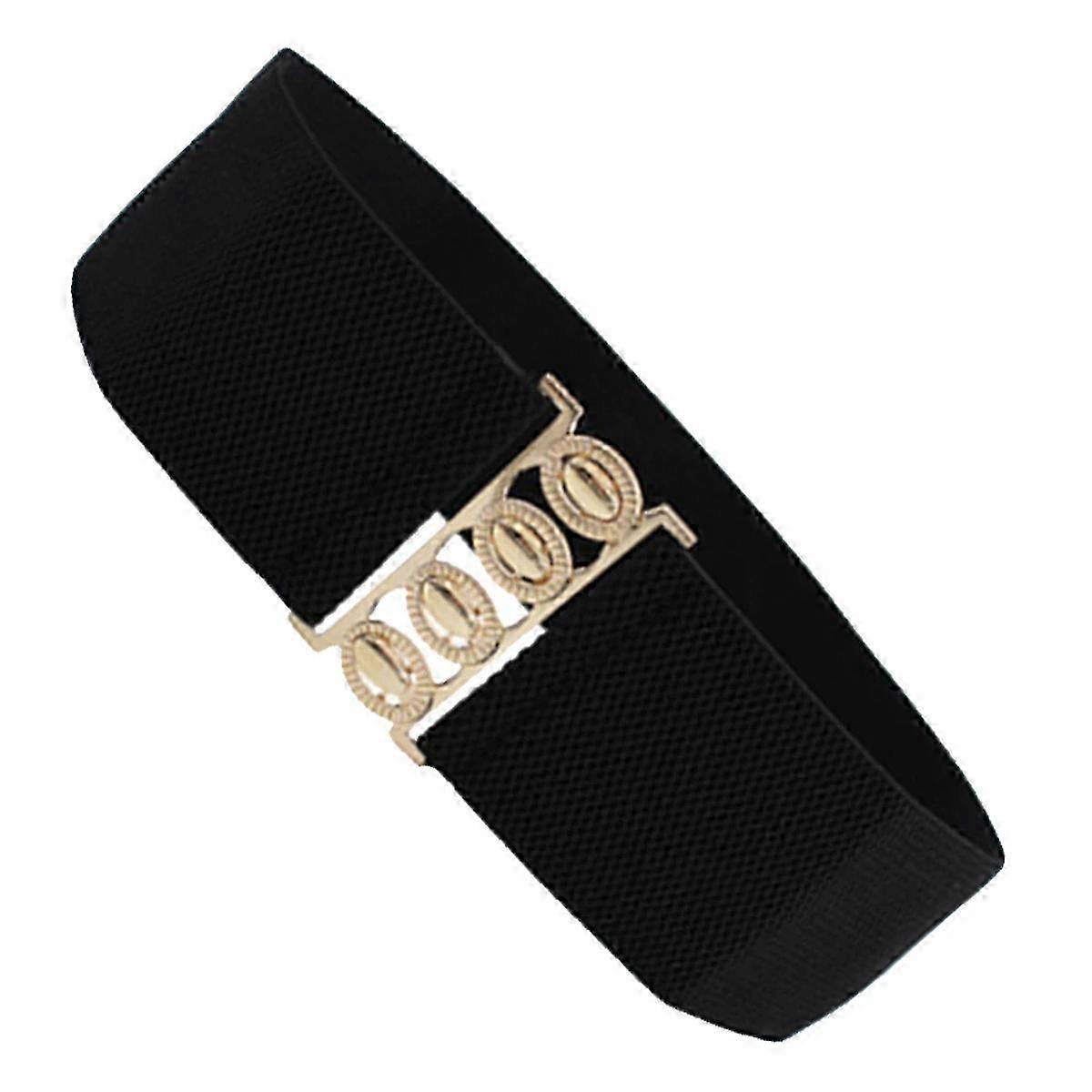 Wide Elastic Waist Cinch Belt Retro Clasp Buckle Black