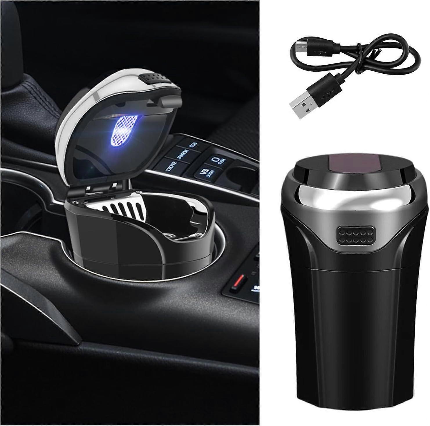 Suvnie Car Ashtray with Lid, Detachable USB Rechargeable Auto Cigarette Lighter with Blue LED Light, Portable Smell Proof Stainless Car Ash Tray, Mini