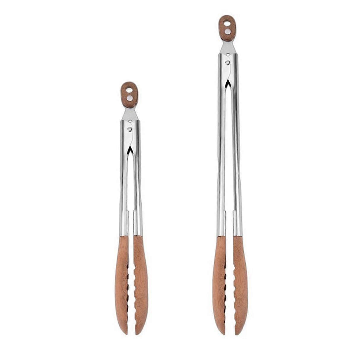 Stainless Steel Food Clips, 9-Inch 12-Inch BBQ Grill Clips, Buffet Barbecue Clips, Wooden Food Clips