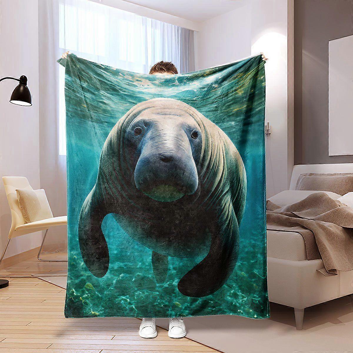 Coastal Style Manatee Print Flannel Blanket - Soft All-Season Multi-Use Throw for Home, Office, Travel & Picnics - Vibra-poiuy158