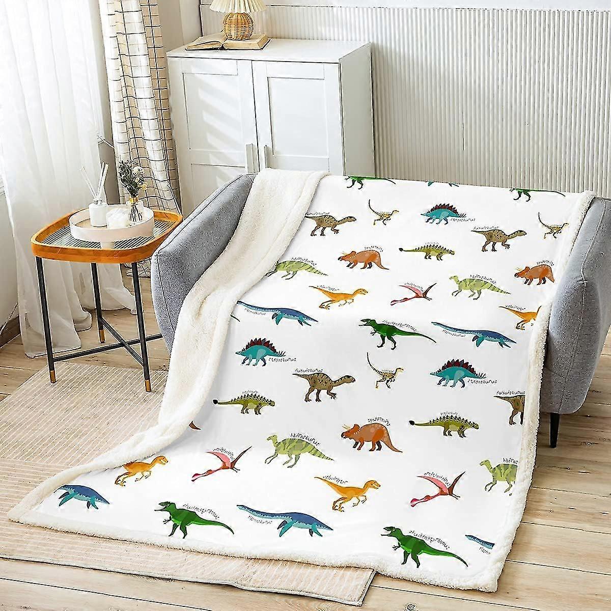 Blanket Cute Dino Throw Blanket Animals Pattern Plush Blanket For Kids Wildlife Fuzzy Blanket F 60x50in 150x125cm